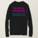 I love this shirt. I had written to the artist asking her if this picture was available on a shirt, and she wrote me back telling me where I could find the shirt. These shirts can be custom made to have a different saying. I loved this saying and went with it. The artist wrote me back later to tell me that she had seen my order go through. How's that for service? Pretty special. It's just as displayed. Perfect!