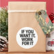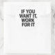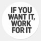 A bold single-line motivational sticker featuring the phrase IF YOU WANT IT, WORK FOR IT. Great for laptops, water laptops, water bottles, journals, and planners.