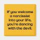 Narcissists tend to keep you on your toes. The last thing they want is for you to feel safe and secure in the relationship. It gives them pleasure to be above you in every way, and when you feel insecure it makes them secure in turn. If you welcome a narcissist into your life, you’re dancing with the devil.