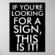 Funny poster with a semi motivational or demotivational quote saying, if you're looking for a sign, this is it! Motivates the reader to stop waiting for a sign and procrastinating, and take action. Bold black and white typographic text design.