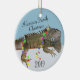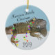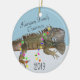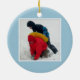 Iguana Christmas ornament. Image of a green iguana draped in a string of lights, makes a festive keepsake for a family, or anyone with exotic pets. Square photo template on the back could hold a family picture or a picture of your iguana.