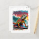 Iguana Surfing Cute Colourful Comic Illustration Postcard
