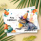 This lizard birthday card features a unique and original illustration of a watercolor iguana wearing a festive party hat and is filled with colourful birthday balloons, making it a unique choice for those who appreciate the exotic beauty of zoo animals. This greeting card provides a delightful and memorable way to extend your warmest birthday wishes, adding a touch of exotic charm to the celebration.