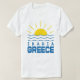 Enjoy this summer with this Ikaria, Greece sunshine and sea waves men's white T-shirt. This blue and yellow design features sunshine and water waves with Ikaria in Greek style lettering with a large blue word Greece. Wear this t-shirt while you're on this beautiful Greek island or give it as a great gift or souvenir.
