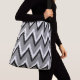 Ikat chevron / flame stitch pattern with a striated, woven texture - classic black and white on a medium silver grey / grey background print bag