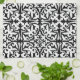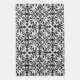 Digital reproduction of a damask medallion pattern with a striated, Ikat woven texture - White on a black background