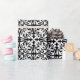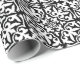 Digital reproduction of a damask medallion pattern with a striated, Ikat woven texture - White on a black background
