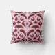 Digital reproduction of a damask pattern with a striated, Ikat woven texture - pale pink on a burgundy / maroon background
