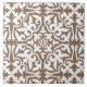 Digital reproduction of a damask medallion pattern with a striated, Ikat woven texture - Creamy white on a taupe tan background