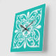 Digital reproduction of a damask medallion pattern with a striated, Ikat woven texture - creamy white on a turquoise / peacock blue background