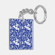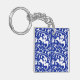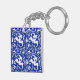 Ikat Floral Damask - Cobalt Blue and White Key Ring