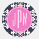 Ikat & Pink Monogram Classic Round Sticker