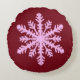 Ikat Snowflake - Burgundy Wine and Pink Round Cushion