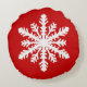 Ikat Snowflake - Dark red and white Round Cushion