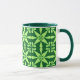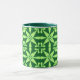 Digital reproduction of a stylised, four-point star pattern with a striated, Ikat woven texture - Dark pine or forest green with soft mint green