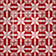 Digital reproduction of a stylised, four-point star pattern with a striated, Ikat woven texture - White pattern on a deep lipstick red background