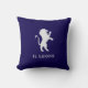 This elegant pillow says "Il Leone", or "Lion" in Italian, in classic modern typography with a white silhouette illustration of a lion.
