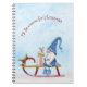 The words "I'll be gnome for Christmas" and a bearded gnome sitting on a decorated sleigh with Christmas gifts highlight this punny notebook.. Text is fully customisable.