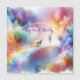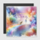 Watercolor illustration I'll meet you at the Rainbow Bridge. A whimsical, dreamlike scene depicting a colourful, ethereal Rainbow Bridge stretching across a fantastical landscape filled with soft, swirling clouds in vibrant hues of blue, pink, and yellow. The atmosphere is serene and magical, evoking a sense of wonder and tranquillity, surrounded by shimmering stars and light trails that enhance the enchanting feel of the scene.