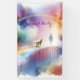 Watercolor illustration I'll meet you at the Rainbow Bridge. A whimsical, dreamlike scene depicting a colourful, ethereal Rainbow Bridge stretching across a fantastical landscape filled with soft, swirling clouds in vibrant hues of blue, pink, and yellow. The atmosphere is serene and magical, evoking a sense of wonder and tranquillity, surrounded by shimmering stars and light trails that enhance the enchanting feel of the scene.