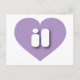 This postcard features a lavender heart containing the bold, white, rounded, lower case letters il, a playful abbreviation for Illinois, the prairie state. The reverse side of the postcard is blank, awaiting your handwritten sentiments or customised text.