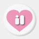 This magnet features a vibrant pink heart containing the bold, white, rounded lower case letters il, a playful abbreviation for Illinois, the prairie state.