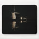 Mousepad with the famous windmills of Kinderdijk on a row along the canal with reflection in the water, illuminated in the dark night, creating a surreal scene in the Netherlands.