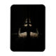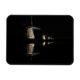 Rectangular photo magnet of the famous windmills of Kinderdijk on a row along the canal with reflection in the water, illuminated in the dark night, creating a surreal scene in the Netherlands.