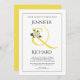Elegant ampersand and white rose illuminating yellow virtual wedding invitation. It includes an elegant ampersand in illuminating yellow, the text "LOVE IS NOT CANCELLED", a white rose and your names and details.