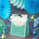 illusima White Ribbon White Peonies Flowers Turquoise Thank You Gift Box/ Favour Box.