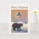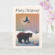 Illustrated bear, magpie, turtle holiday snow card