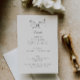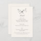 The card features an off white background, offering a serene and classic canvas that enhances the minimalist design. The elegant charcoal grey font, inspired by vintage calligraphy, adds a touch of sophistication and warmth. This carefully selected typography complements the artistic elements, ensuring your wedding details are presented with style and clarity.