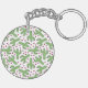 Illustrated Cactus & Pink Flowers Pattern Key Ring