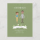 Illustrated Cartoon Couple Portrait Wedding Announcement Postcard
