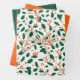 Illustrated Christmas Holly Red & Green Wrapping Paper Sheets Set of 3