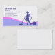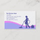 Business card with an iconic silhouette of a professional cleaner in shades of blue and purple.