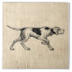 An old fashioned illustrated dog art design featuring a vintage script paper background.