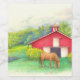 Illustrated Horse Red Barn and Sunflower Wine Label