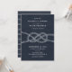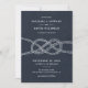 A bold, hand-drawn knot is the centerpiece of this nautical themed wedding invitation.