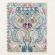 Fun, illustrated year long planner with custom date on the front. Symmetrical, muted blue, green, pink and gray colors in a swirling abstract artwork. Design elements include ladybugs, flowers, vines, wings, and leaves. An interesting and unique family, or business, planner. the design continues to the back also.