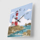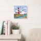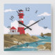 Illustrated lighthouse background square wall clock