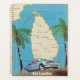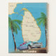 Illustrated map of Sri Lanka (plus surrounding islands) in a beautiful vintage detailed style, decorated with a old autombile.