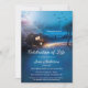 A unique memorial or celebration of life service invitation featuring an illustration of a safe guide to the spirit home, guarded by an angel. You can replace the back blue textured design with a custom photo if you like.