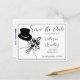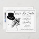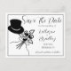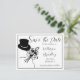 A more artistic save the date, this modern typography design features a formal top hat & bridal rose bouquet illustration on front & holds a small photo on back.