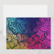 Illustrated pattern of neon rainbow coloured floral designs done in a psychedelic 1960's style
