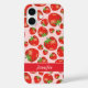 Illustrated Red Strawberry Pattern On Pink & Name Case-Mate iPhone Case
