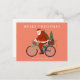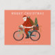 Illustrated Santa Riding a Bicycle Custom Colour Holiday Postcard