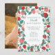 illustrated gouache strawberries in pink and red border. photo back optional. Add a QR code if desired to the backside for registry, website etc