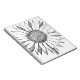 This design features a beautiful illustration of a sunflower. There are around 70 species of sunflower, all belonging to the genus "Helianthus". All species are native to the Americas. The "common sunflower" typically refers to the popular annual species "Helianthus annuus", whose bright round flower heads look similar to the sun.