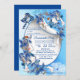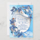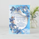 Playful illustrated watercolor white moon-flowers with birds & blue-green leaves on a blue flowering background draped over a creative curled paper image to personalise.